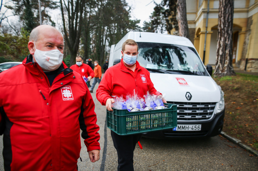 Hatszáz csomag érkezett péntek délben Szombathelyről a Korányi-kórház udvarára a Szombathelyi Egyházmegyei Karitász megváltozott munkaképességűeket foglalkoztató intézményeiben készült kézműves finomságokkal megtöltve.