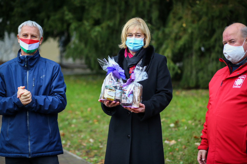 Bogos Krisztina főorvos, a kórház megbízott főigazgatója az ajándékot megköszönve elmondta, a csomagok számukra az emberek figyelmének, elismerésének jelei, és kifejezik számukra, hogy szükség van erőfeszítéseikre, éjt nappallá téve végzett munkájukra. Kifejtette, a jövőre 120 éves intézet kiemelt szerepet kapott a koronavírusos betegek ellátásában, az ott dolgozók pedig újra megtanulhatták, milyen jó új gyógymódokat keresve gyógyítani.