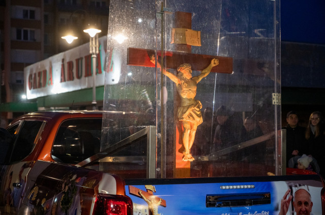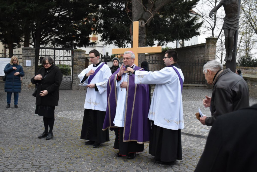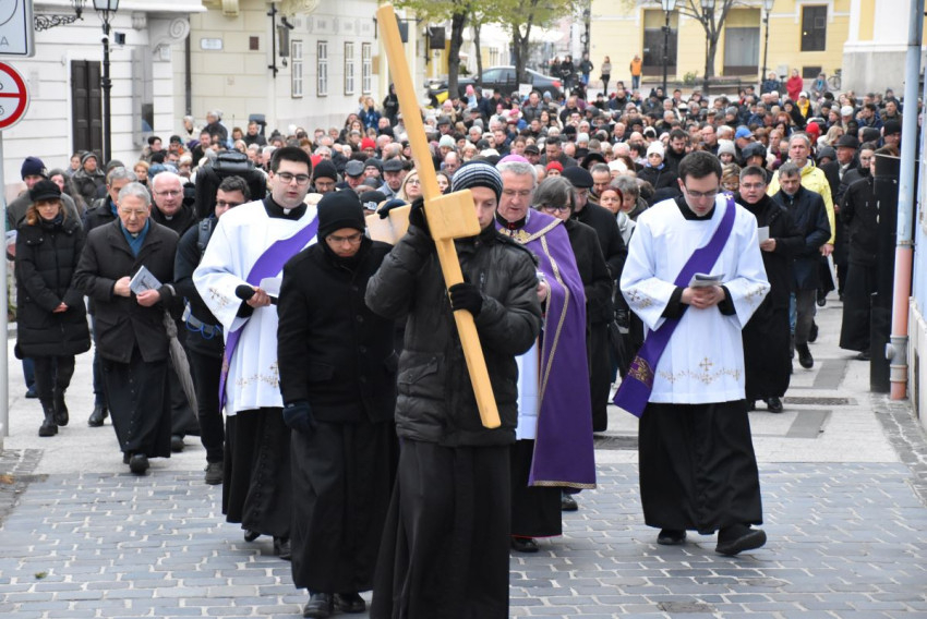 Győrben nagypénteken hat órakor indult a keresztút a Nagyboldogasszony-székesegyház előtt álló Mindenki Krisztusa szobortól. Az ájtatosságot Veres András megyéspüspök vezette.