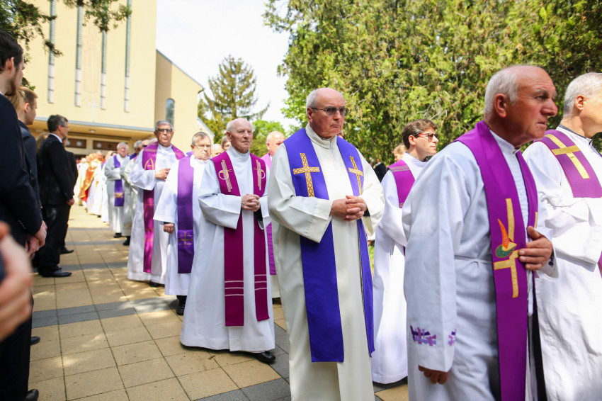 Erdő Péter bíboros eltemette a plébánost, majd újra felhangzott a Salve Regina, melynek hangjai a környék házainak faláról is visszaverődtek.