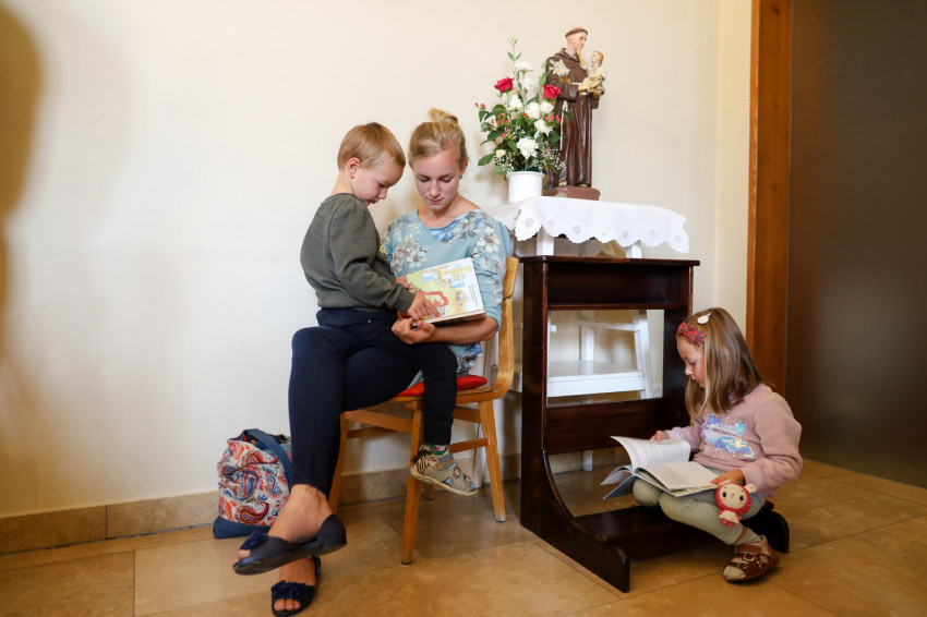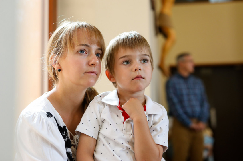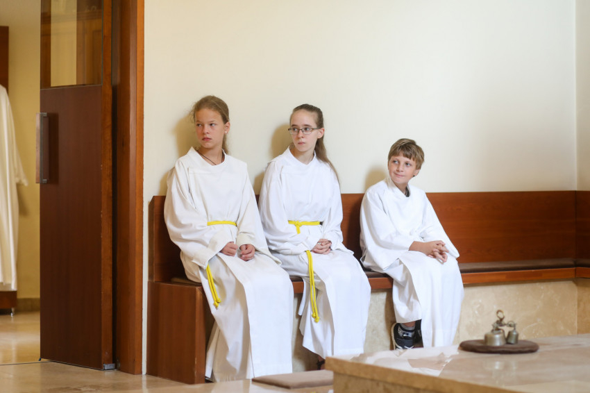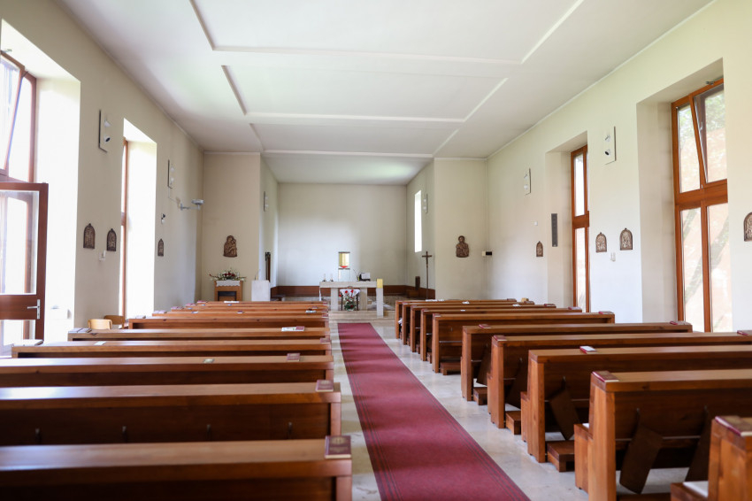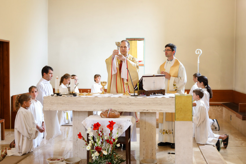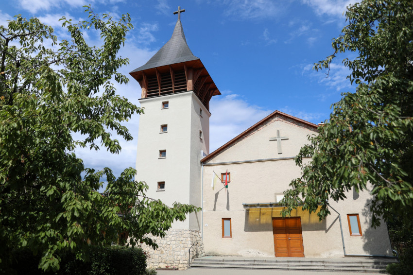 A belépő tekintetét azonnal a szentély középpontjában található tabernákulum ragadja meg. A homokszínűre festett falakat óriási ablakokkal törték át, melyeken át beáramlik a fény és beköszön a természet. Tágas a tér, az építőknek félszáz évvel ezelőtt megvolt a gondviselésbe vetett bizalma és hite, hogy utódaik is meg fogják tölteni azt. A szentmisén erről meg is bizonyosodhattunk, holott egyrészt a telepi plébánia egyik meghatározó létszámú közössége, a cserkészek közös hétvégén voltak távol, másrészt a hosszú hétvége is sokakat elcsalt otthonról.