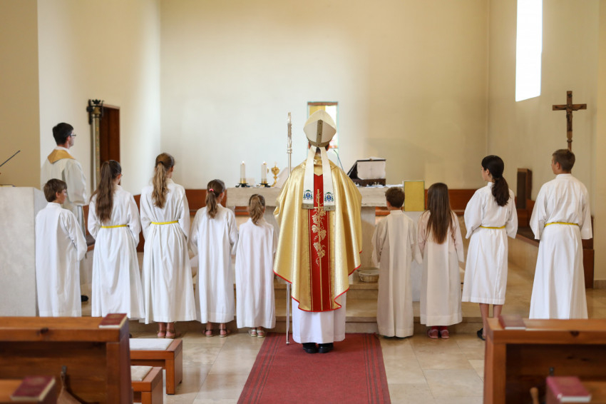 A szentmise elején Kelemen László plébániai kormányzó köszöntötte a közösséget. Örömét fejezte ki, hogy Mohos Gábor püspökkel ünnepelhetnek, hiszen 2019 februárjában ő volt az, aki megáldotta a mára felépült közösségi ház alapkövét. „Mostantól a mi feladatunk, hogy élettel töltsük meg” – fejezte ki a közösség vágyát és feladatát a plébános.