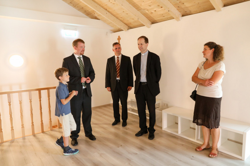 Göbl Richárd (2011 Egyesület) polgármester köszöntőjében arról az örömről beszélt, hogy míg Európában templomokat zárnak be, és közoktatási intézmények falairól távolítják el a keresztet, addig a budakalászi egyre növekvő hívő közösség épít: paplakot, amit Erdő Péter bíboros áldott meg az elmúlt ősszel, most közösségi házat, és hamarosan óvodát, majd reményeik szerint talán iskolát. Ebben a polgármester Isten szeretetét látja, a gondviselés műveként éli meg mindezt, és vallja, a közösség feladata lesz, hog katolikus szellemű oktatással, a keresztény értékek mentén folytatott élettel megtöltse az épületeket. Göbl Richárd szerint reményeiket erősíti, hogy az elmúlt ősszel választott városvezetés nagy része a plébániai közösségből verbuválódott. „Függetlenek vagyunk pártoktól, döntéseinket a keresztény erkölcsiségre alapozva hozzuk meg, etikai kódexünk alapja a tízparancsolat és Krisztus tanítása” – mutatott rá elkötelezettségükre.