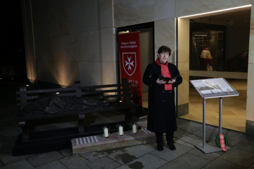 Este gyertyagyújtásra és elmélkedésre várták az érdeklődőket. A Magyar Máltai Szeretetszolgálat nevében a kalocsai csoport tagja, Tóthné Ildikó ismertette a szobor történetét. Elmondta, azért fogadták Kalocsán a hajléktalan Jézus szobrát, hogy ráirányítsák a figyelmet a rászoruló emberekre. „Az elesett emberek méltóságát a szociális ellátórendszer önmagában nem tudja visszaadni, arra csak a társadalom, csak mi, embertársak vagyunk képesek. Ez a szobor megmozgatja az emberek lelkiismeretét, és nyitottabbá teszi őket.”