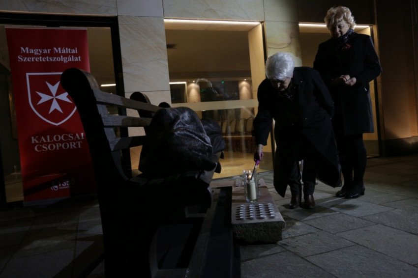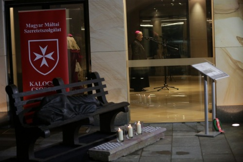 A szeretetszolgálat önkéntes munkatársa hozzátette: „Fontosnak tartjuk, hogy juttassunk rászoruló embertársainknak. Ezt mutatja, hogy itt, Kalocsán a 21. »Adni öröm« akcióban egy hét alatt több mint egy tonna tartós élelmiszert ajánlottak fel a rászoruló embereknek.” A rövid ismertető után a jelenlévők elhelyezték az együttérzés gyertyáit a szobor mellett. A gyertyákat Bábel Balázs kalocsa-kecskeméti érsek, Rigóné Kiss Éva, a Magyar Máltai Szeretetszolgálat Dél-alföldi Régiójának regionális ügyvezetője és Miklós Györgyné Zsuzsanna, a segélyszervezet kalocsai csoportjának vezetője gyújtották meg.