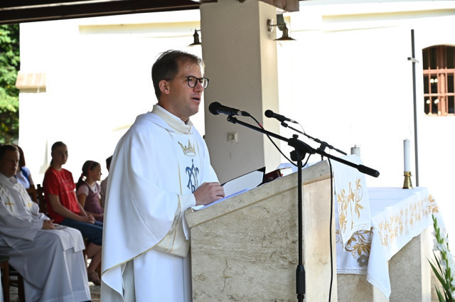 A szentbeszédben Németh Norbert Szűz Mária mennybevételének ünnepén arra tanított, mi Mária szerepe az életünkben. Az ünnep a nagy célunkat, az örök üdvösséget mutatja számunkra, ez a mi jövőnk. Igazi zarándoklásunk ide irányul. Isten Márián keresztül akar minket segíteni. A célba érkezett asszony mögött ott van egy út, pont olyan, mint a mi életünk is. Gyönyörű, ajándékos élet az övé, és az ünnep megtanítja nekünk, hogyan legyünk kapcsolatban Máriával. Mária a mennybe érkezett asszony, a mennybe felvett asszony – tőle akarunk tanulni, belőle erőt meríteni.