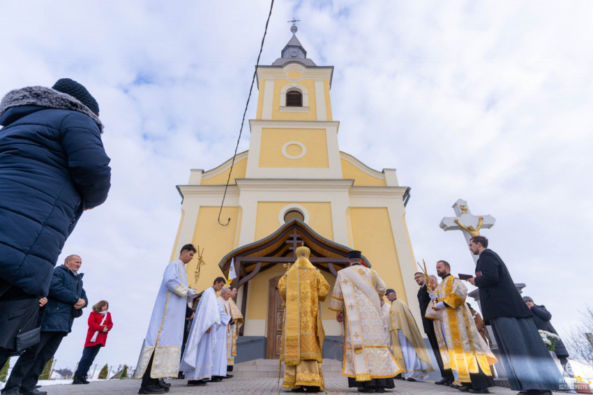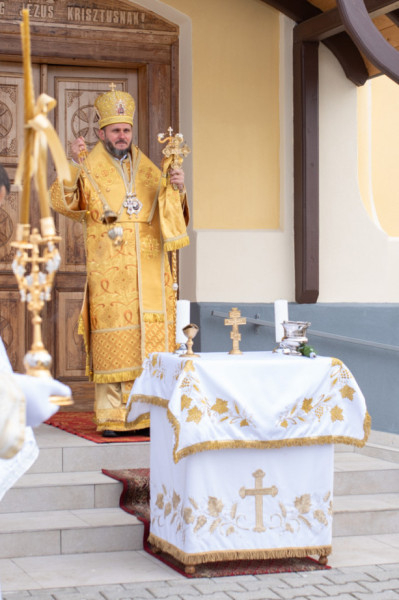 Szocska Ábel püspökkel együtt a templomhoz vonult az asszisztencia és a papság – Szabados János petneházi, Mosolygó Tamás napkori, Orosz Zoltán baktalórántházi parókusok, Kanyó Árpád leveleki esperes-parókus, valamint Buda Attila nyírtéti parókus. A főpásztor megáldotta a templomkülsőt, majd a templomban a szertartás előtt Szabados János parókus házigazdaként köszöntötte a megjelenteket.