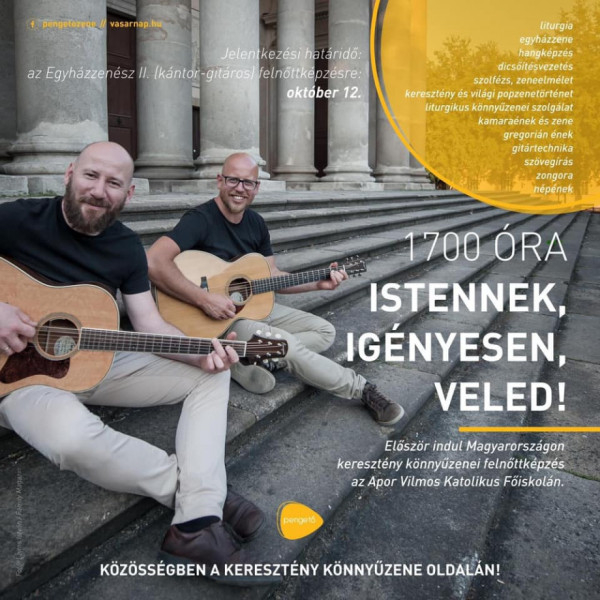 Az Apor Vilmos Katolikus Főiskola Egyházzenész II. kántor–gitáros szakképesítésére ITT lehet jelentkezni. A határidő: október 12. éjfél.