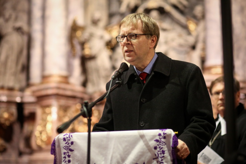 Fabiny Tamás könyörgésében a tavaly virágvasárnap Egyiptomban az Iszlám Állam terroristái által meggyilkolt kopt keresztényekre emlékeztetett, akiknek vére a pálmaágakra fröccsent. Tanúk kívántak lenni, és vértanúkká kellett lenniük – tette hozzá az evangélikus püspök, aki arról is beszélt, hogy biztosak lehetünk benne, korunk vértanúinak neve is fel van írva a mennyben.