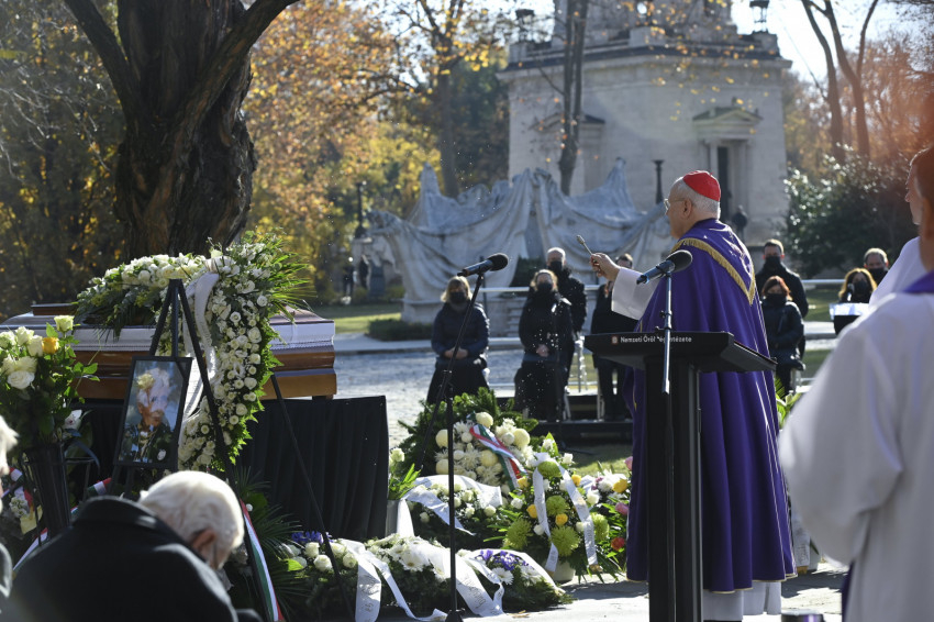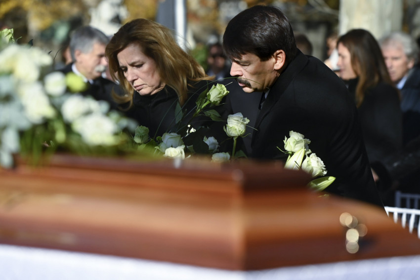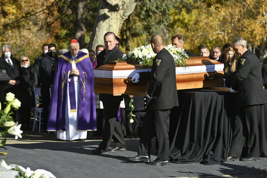 A gyászolók egy-egy fehér rózsával búcsúztak Mádl Dalmától, akit a férje melletti sírba helyeztek örök nyugalomra.