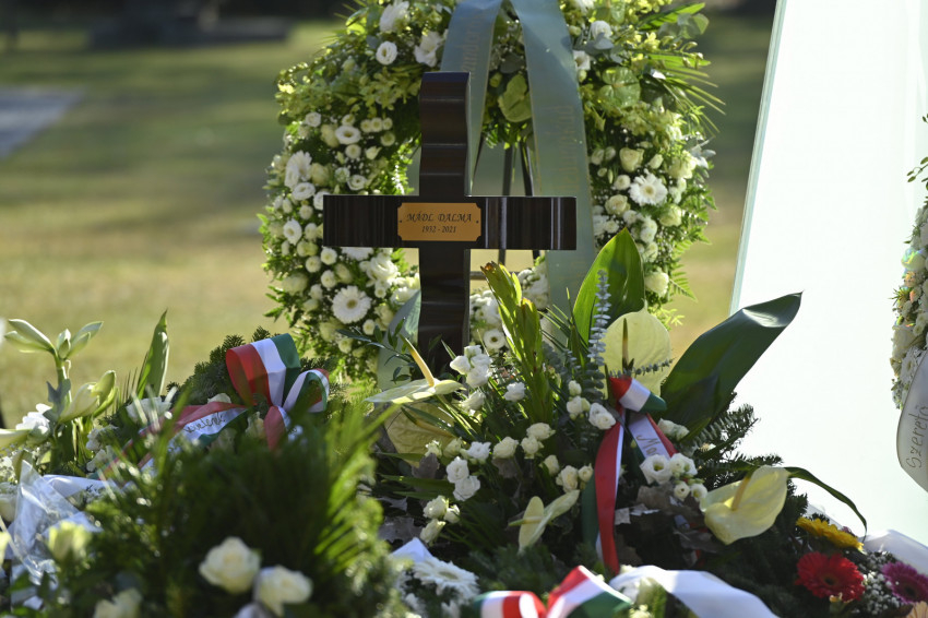 A gyászszertartáson Lévai Anikó, Orbán Viktor miniszterelnök felesége, a Magyar Ökumenikus Segélyszervezet jószolgálati nagykövete búcsúbeszédében azt mondta, a megrendülés és bizonyosság együtt van jelen most, amikor Mádl Dalmát utolsó útjára kísérik.