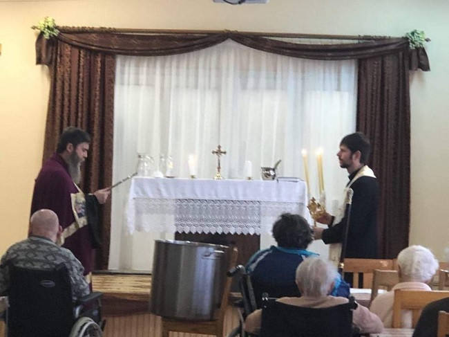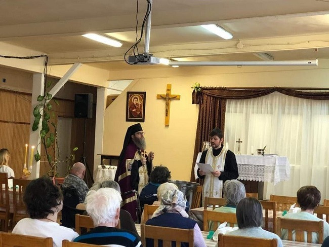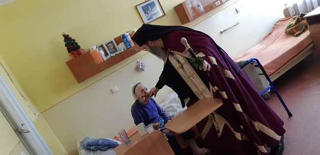 Orosz Atanáz püspök Salai Szabolcs atyával, az intézmény görögkatolikus szolgálattevőjével együtt végezte el a nagy vízszentelés szertartását az otthonban vízkereszt ünnepkörében, január 7-én.