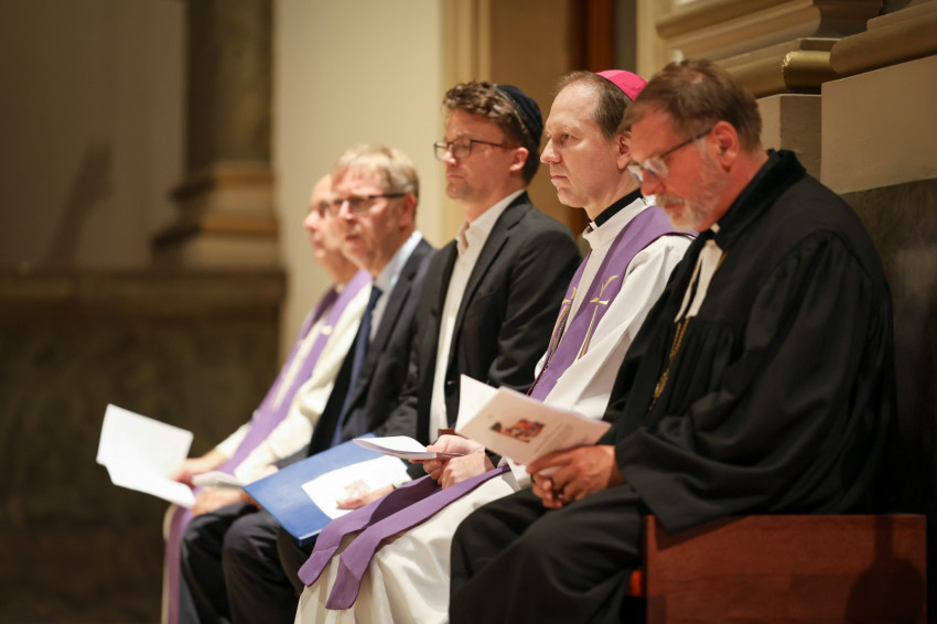 Az elmélkedést követően a társegyházak képviselői könyörögtek az Úrhoz az áldozatokért és egy békés, erőszaktól mentes világért. Fabiny Tamás az imádságos lapon szereplő képen elmélkedve továbbfűzte az irgalmas szamaritánus történetét: a Jeruzsálemből Jerikóba vezető út lehet a Budapestről Auschwitzba, a Kislétáról Tatárszentgyörgyre vezető út; utak, amelyeken elkerüljük a bajbajutottakat. Egy elbeszélést idézett fel, amelyben az irgalmas szamaritánus megáll mindenki mellett és bekötözi mindenki sebét, és a 2333. eset után elindul a rablótanya felé, mert arra gondol, jobb szamaritánus lehetne, ha a tettesekkel, az okokkal is foglalkozna. Kérte az Urat azokért, akik felelős döntéseket hozhatnak, hogy tegyenek meg mindent a bűn tobzódása ellen, az igazság érvényesüléséért.
