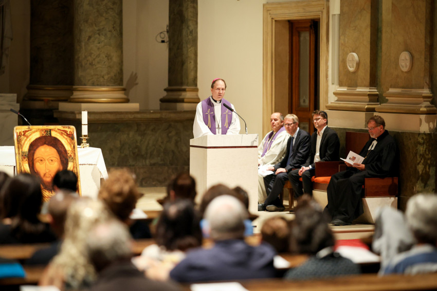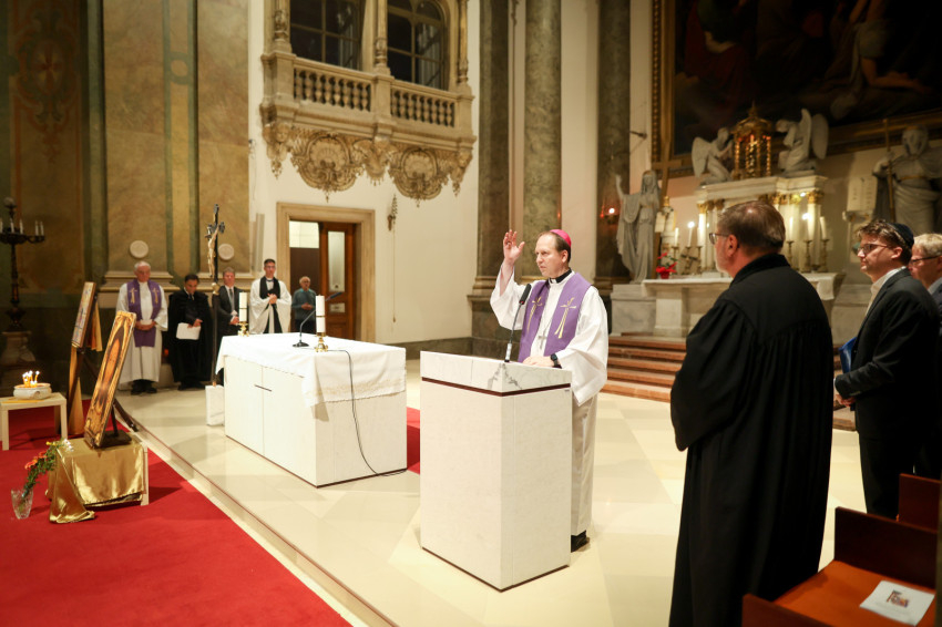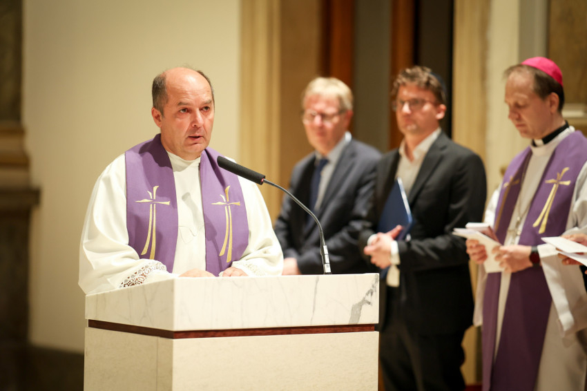 Az áldozatok nevének, történetének megrendítő felolvasását és a gyertyagyújtást követően Mohos Gábor püspök homíliájában kiemelte, mennyi szörnyűség történik ma is a világban, amelyek miatt szavainkkal, tetteinkkel példát szeretnénk adni arra, hogy szebbé lehet formálni a világot. A felolvasott evangéliumi részhez kapcsolódva – amelyben Péter a megbocsátásról faggatja Jézust – elmondta: Isten mindenki iránt egyformán irgalmas, mint a példabeszédben a király, akinek a szíve megesik a szolgán, és elengedi adósságát. Mi, emberek, bár megtapasztaljuk Isten bocsánatát, emberi kapcsolatainkban mégsem tudjuk könnyen megvalósítani.
