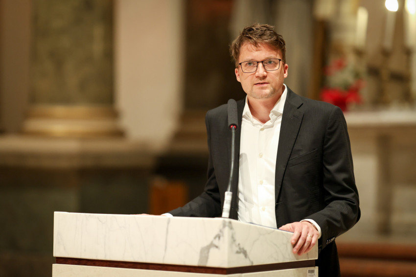 Szőke Péter, a Sant’Egidio közösség budapesti és regionális felelőse köszöntőjében korunkat Káin korához hasonlította, Ukrajna, Gáza, Szudán, Kongó és megannyi egyéb hadszíntérrel. Olyan kor, amelyben a „háborút rehabilitálták, a béke eszményét gúnyosan megmosolyogják. A dzsungel törvénye, az erősebb joga érvényesül a gyengébbel szemben”. És nem csak a gyilkosok Káin követői, hanem