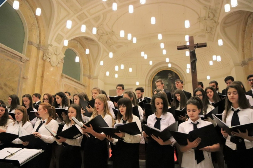 Elsőként a budapesti Piarista Gimnázium kisénekkara énekelt, majd az iskola Vörösmarty nevét viselő diákkórusa két férfikarra írt Schumann-kánont adott elő, Melegh Béla karnagy vezényletével. A programot a mosonmagyaróvári piarista iskola énekkara folytatta, Keresztényné Barth Judit vezetésével. A váci piarista gimnázium nagygimnazistái többek között spirituálékat szólaltattak meg, Horváth Tamás karnagy vezetésével.
