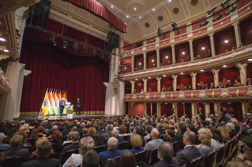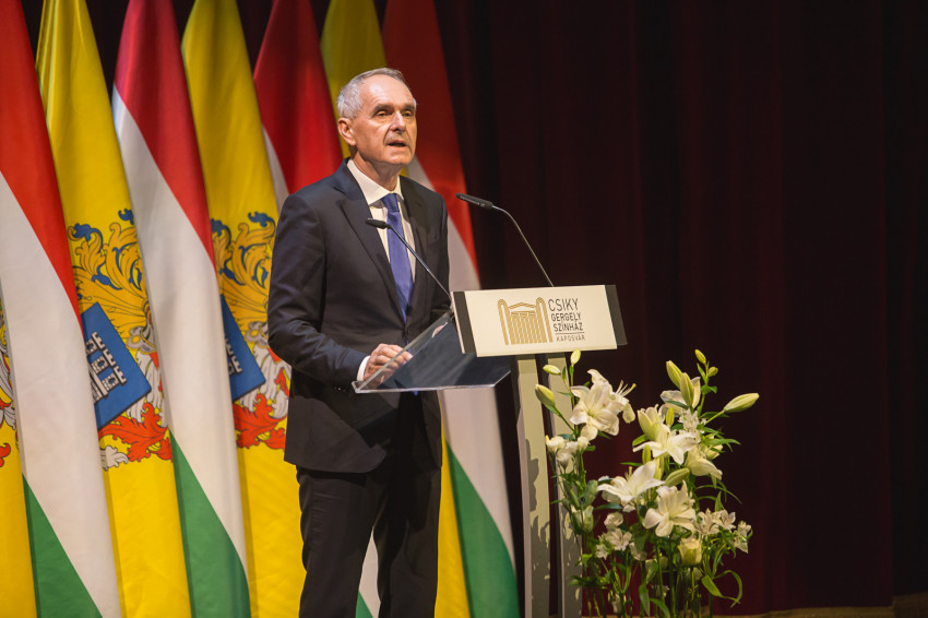„A színháznak olyan kell lennie, mint a templom! – idézte Schwajda György író, dramaturg, volt színházigazgató szavait Szita Károly kaposvári polgármester. – Igen, templom a színház: a kimondott szó, a magyar szó temploma. Ezért is figyelünk rá oly féltőn, ezért újítjuk meg időről időre, ezért vagyunk képesek rajongani érte.” A városvezető ezüst emlékérmet adott át L. Balogh Krisztina, a város volt főépítésze és Szalai József, a színház műszaki vezetője részére, áldozatos munkájuk elismeréseként.