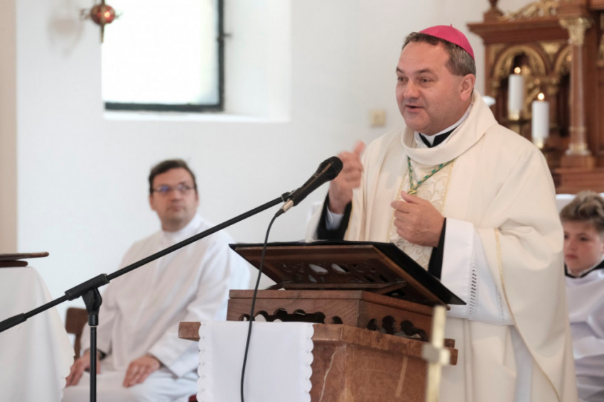 A főpásztor homíliájában a templom jelentőségével, a templomépítő bátorságával és Krisztus mennybemenetelével kapcsolatban hangsúlyozta, hogy mély jelenlétre hív ez az ünnep. „A történelem viszontagságai sem tartották vissza Kovács József atyát a jó cselekedetektől, melyek hitének erejét igazolják. Ezen a vasárnapon, amikor Urunk mennybemenetelét ünnepeljük, tegyük fel a kérdéseket: Hogyan építkezünk mi? Hogyan építjük életünket?”