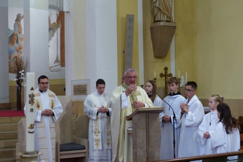 A Szent Imre-nap fénypontja a Veres András győri megyéspüspök által celebrált szentmise volt a komáromi Jézus Szíve-templomban. A gyerekekhez szóló prédikációjában arra hívta fel a figyelmet, hogy mindenkiből lehet szent, még ilyen fiatalon is, mint a jelen lévő tanulók.