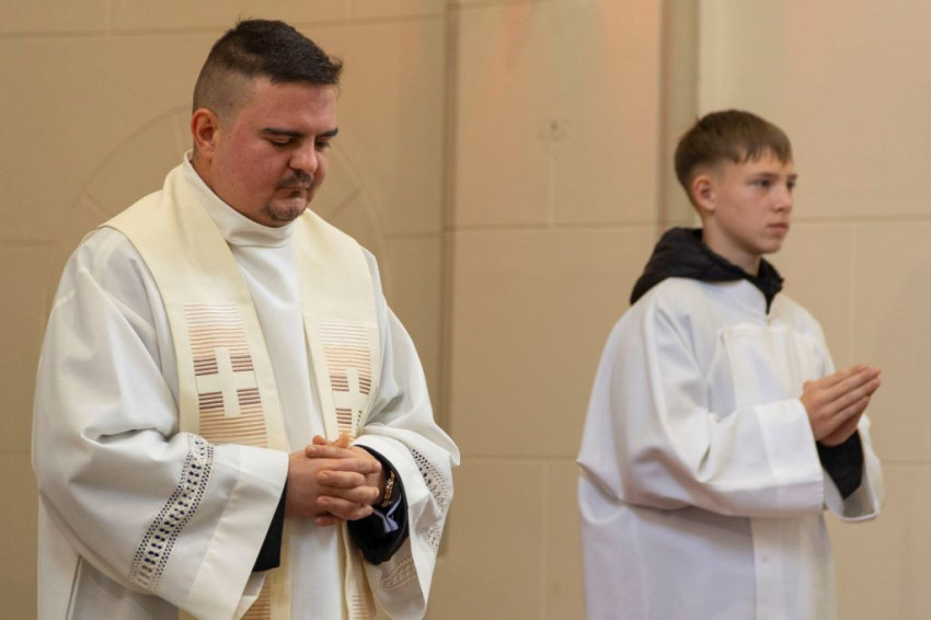 Koncelebrált Varga Gábor plébániai kormányzó és Hencz Márton püspöki titkár.
