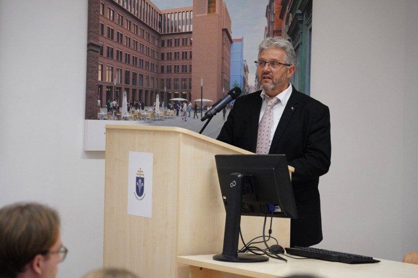 Az eseményt Birher Nándor dékán köszöntője nyitotta meg, aki beszédében hangsúlyozta, hogy a 2025-ös felvételi eredmények tanúsága szerint a Bölcsészet- és Társadalomtudományi Kar iránt továbbra is töretlen az érdeklődés: közel 17 ezer jelentkező közül több mint háromezer új hallgató kezdhette meg tanulmányait az őszi félévben. Kiemelte, hogy az egyetem a nemzetközi elismerések terén is előrelépett, hiszen idén a Times Higher Education rangsorán is helyet kapott.