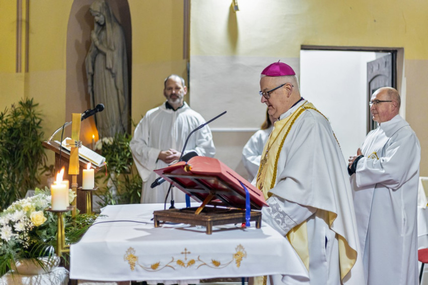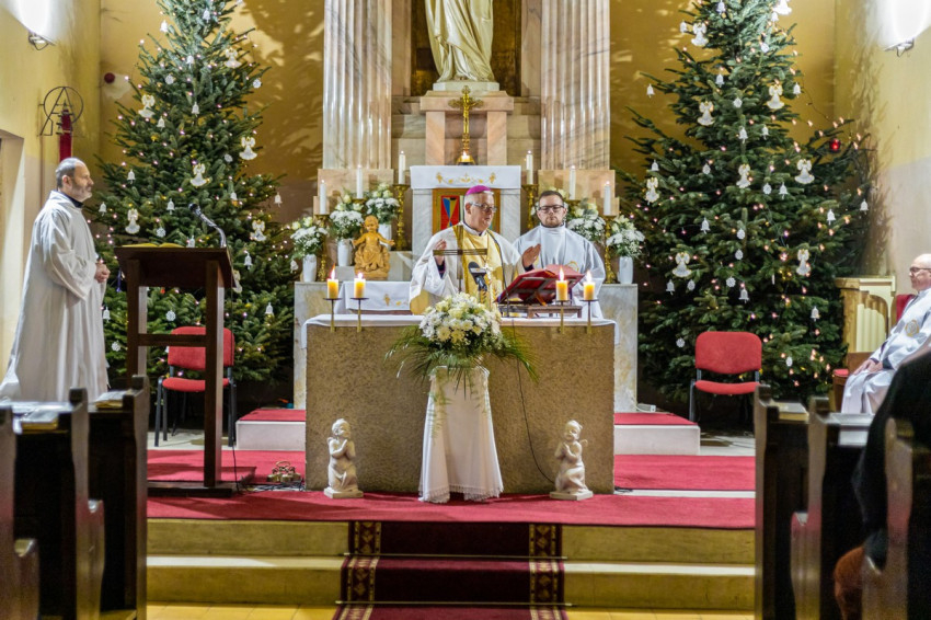 A szentmisében a plébános vezetésével elimádkozták a Prohászka Imaszövetség imáját, majd a főpásztor az újévi ünnepélyes áldással megáldotta a népet.