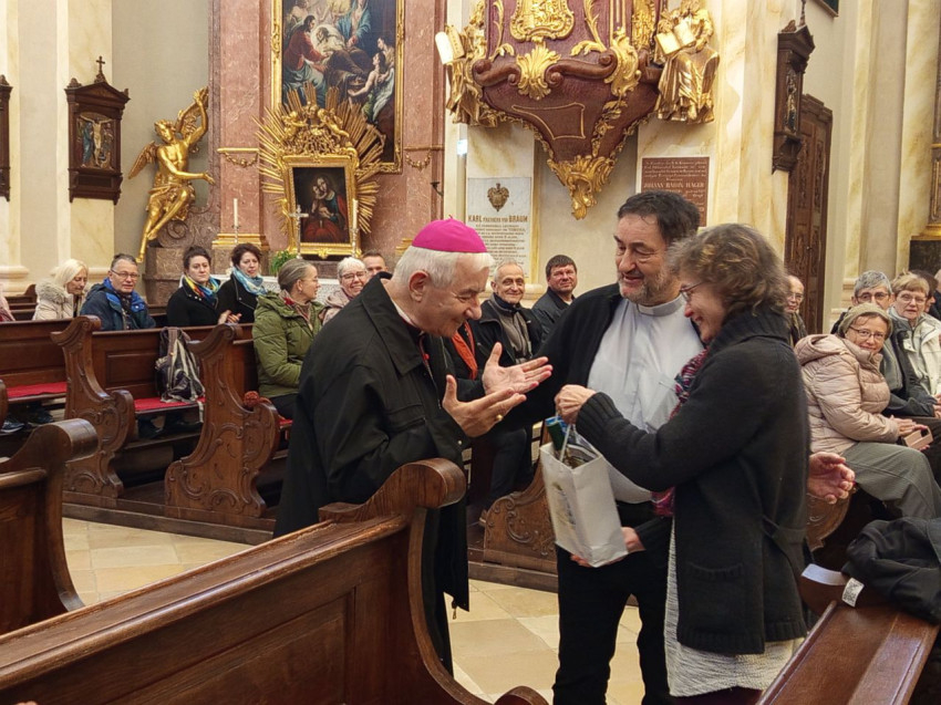A második nap délelőttjén a gyönyörűen felújított székesegyházban Pál József Csaba temesvári megyéspüspök fogadta a csoportot, és mesélt a székesegyházról, az ottani hitéletről. Majd Kondé Lajos minden résztvevőnek egy személyre szóló elismerő oklevelet adott át hálából az eddigi plébániai szolgálatáért.