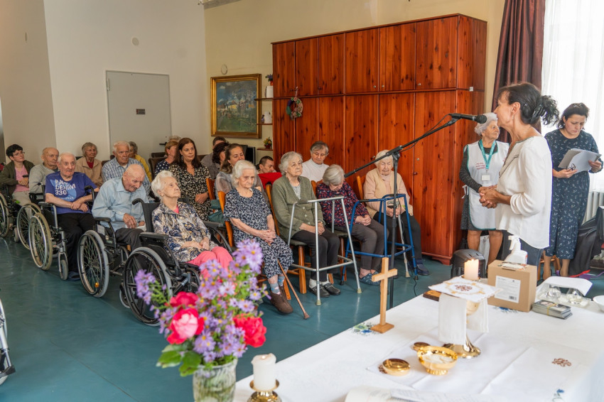 A szentmisét követően az intézményben dolgozó indiai nővérek műsora után megnyitották a lakók alkotásaiból készült tárlatot, majd köszöntötték az otthon 90 évnél is idősebb lakóit, köztük a 103 éves Gálos Józsefnét is.