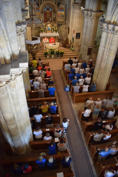 Este hat órakor ünnepi szentmise kezdődött, melyen a helyi hívők mellett részt vett egy Dunaszerdahelyről érkező zarándokcsoport is, melynek tagjai előzőleg meglátogatták mind a lébényi, mind a mosonszentmiklósi templomot tárlatvezetéssel. A csoportot Mészáros Dávid dunaszerdahelyi káplán kísérte.