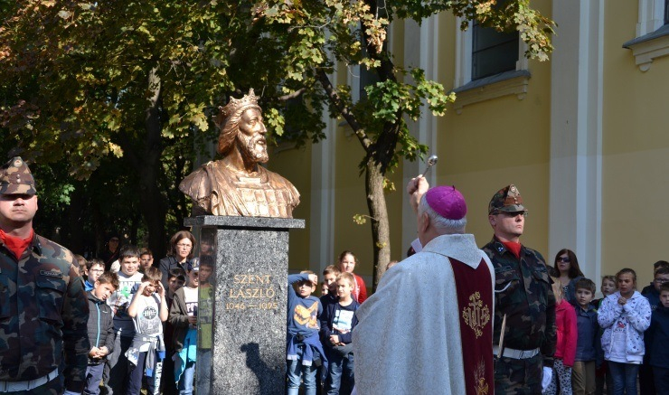 A lovagkirály szobrát, Lantos Györgyi szobrászművész alkotását Bíró László tábori püspök áldotta meg. Beszédében hangsúlyozta: Szent László az örök élet távlatában élő ember volt, a vásárhelyi szobor tekintete épp ezt a dicső érzést fejezi ki.