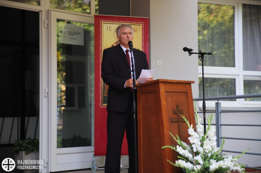 Bánk Tibor, az iskola igazgatója köszönetet mondott a felújításhoz nyújtott anyagi támogatásért. Kiemelte, hogy az intézmény csak két éve működik a Hajdúdorogi Főegyházmegye fenntartásában, de az elmúlt évtizedek egyik legjelentősebb fejlesztése történt meg az épületben. Kicserélték a nyílászárókat, elvégezték a tető és az épület állagjavítását, szigetelését, és napkollektorokat szereltek be. Így az iskola működése környezetbaráttá és költséghatékonyabbá vált, ami a környezettudatos magatartásra nevelésnek is részét képezi. A beruházás keretében építészetileg, gépészetileg és elektromos szempontból is teljesen újjáépült az ötszáz adagos főzőkonyha. Jelenleg ez a konyha látja el a Hajdúdorogi Főegyházmegye debreceni intézményeit.