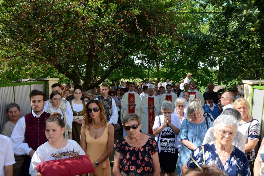 A falunak el-elcsukló hangon Posztós Lenke Szülőfalum templomába jöttem imádkozni című versével mondott köszönetet. Végül horvátul és németül is elmondta köszönő szavait.