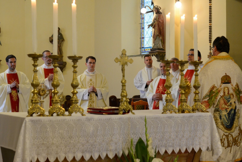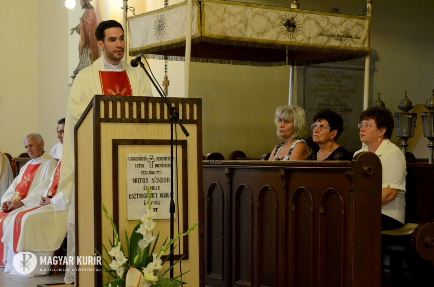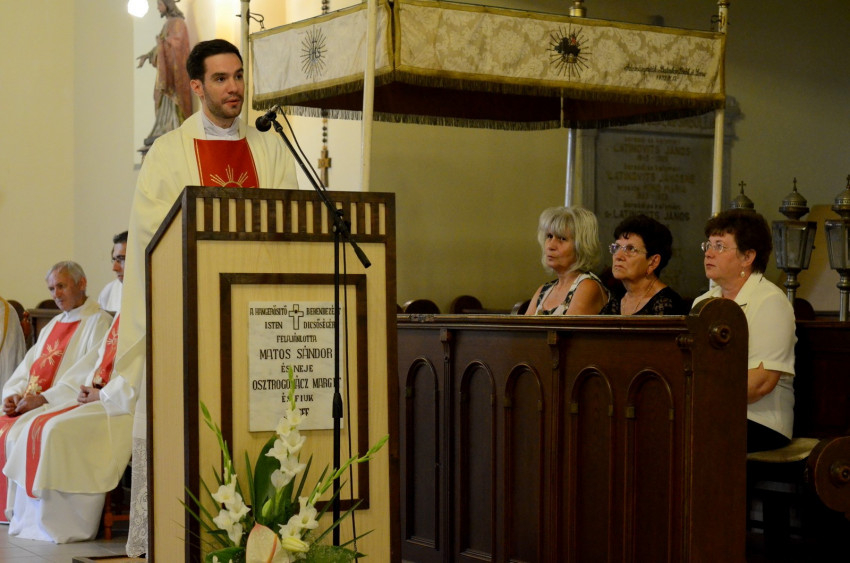 A szentbeszéd megtartására az újmisés Poljak Luka atyát, a Szabadkai Egyházmegye papját kérte fel. A horvát származású pap magyarul és horvátul is elmondta homíliáját. Tanulja a magyart. Jelenleg még Zomborban szolgála, de egyházmegyéjében olyan területre kérte magát, ahol magyar ajkúak is élnek, így fog a nyáron az észak-bánsági Moholra kerülni. Szentbeszéde egyszerre dicsérte a szülőföld szépségét, és adott tanítást a papi hivatásról. Sarlós Boldogasszony ünnepén párhuzamot vont Mária Erzsébethez vezető útja és a pap életútja között. Mária a júdeai Ain Karim városába indult útnak, hogy meglátogassa Erzsébetet. Ekkor már hat hónapja áldott állapotban van, így vállalkozott arra, hogy megtegye a hegyvidéki úton a 150 kilométert Názáretből. „Az Isten hívására válaszoló papi életút is kanyargós, kihívásokkal teli. Nehéz terepen vezető út, melyen a haladás egy életen át tartó közeledés Isten országa felé. Ahogy Mária is várt egy még nehezebb út, amikor elkísérte fiát a Kálváriára, úgy kövesd te is alázatosan egész életeden át Krisztus keresztjének útját, amely során felragyog számodra a megváltás hite, s ez a földi utad az Örökkévalóval való találkozásba torkollik”.