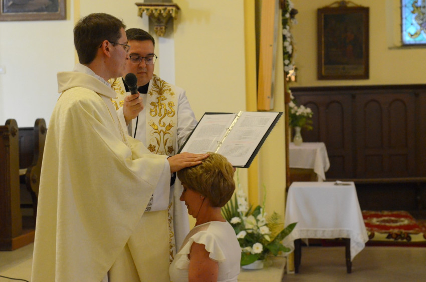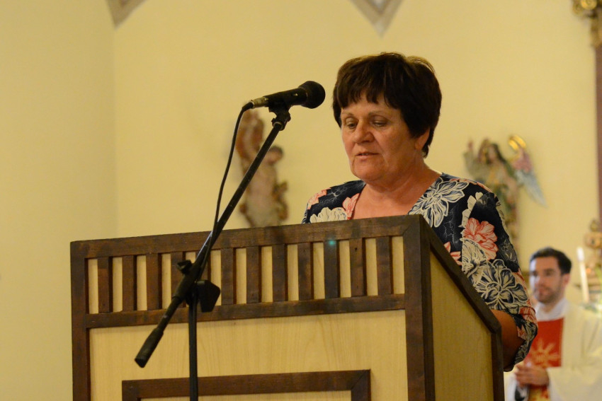 Balázsics Lászlóné a horvát nemzetiségi önkormányzat képviseletében horvátul köszöntötte az újmisést, Pásztor Jánosné pedig a képviselőtestület nevében szólt Szabolcs atyához.