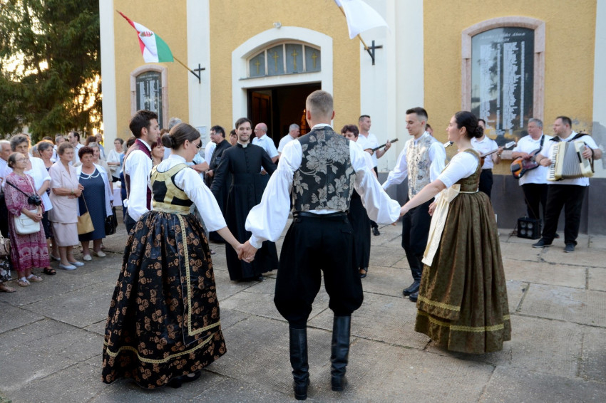 Az újmise után kezdetét vette a templom előtt rendezett szeretetvendégség. Szabolcs atya felöltötte a bunyevác mellényt, amit Luka atya ajándékozott neki. Beszélgetés, a fiatalok kóló tánca zárta az ünneplést.