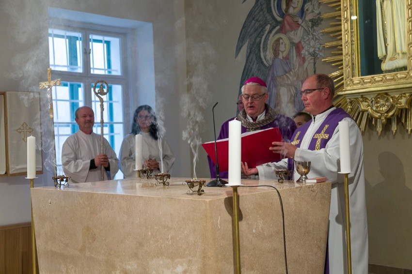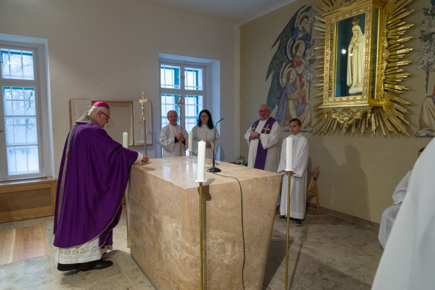 A szentmise keretében a megyéspüspök felszentelte az oltárt. A szentelési imádságot követően Krisztus öt sebének jelképeként az oltárt öt helyen megkente a szent olajjal, a krizmával. Ezután ezen az öt helyen tömjént égettek.