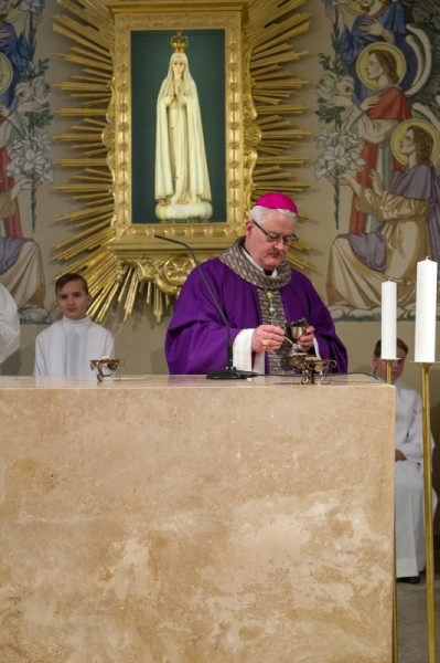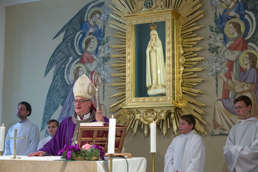Beszédében Spányi Antal püspök a kegyhely jelentőségét hangsúlyozta: e különleges oltárnak erős üzenete van azok számára, akik meg akarják hallani ezt az üzenetet, akár a magyar társadalomban, akár az egész keresztény Európában. Ami itt történt, összefogás eredménye. Száz évvel ezelőtt Fatimában megjelent a Boldogságos Szűz. Majd ötven év múlva a székesfehérvári püspök megálmodott egy templomot, és idehozatta e kegyszobrot, hogy elsőként az országban fatimai kegyhelyet hozzon létre.