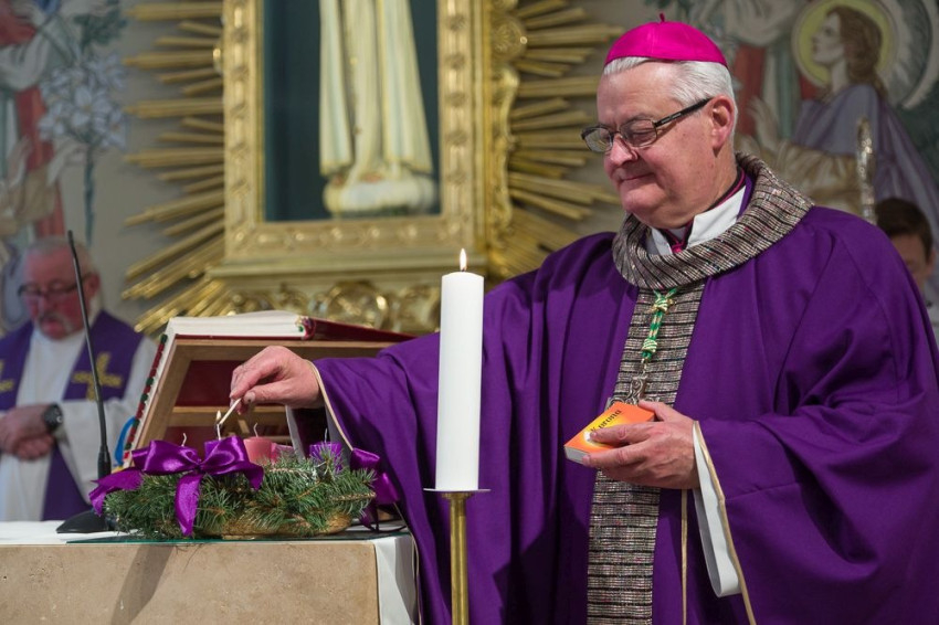 A liturgia végén Spányi Antal megyéspüspök meggyújtotta a templom adventi koszorúján az első gyertyát.