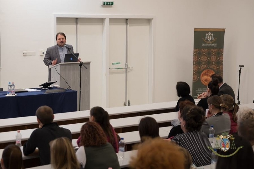 Tóth László Ákos, a Pécsi Egyházmegye közoktatási főmunkatársa és Udvardy György megyéspüspök köszöntötte a pedagógusokat.