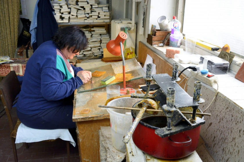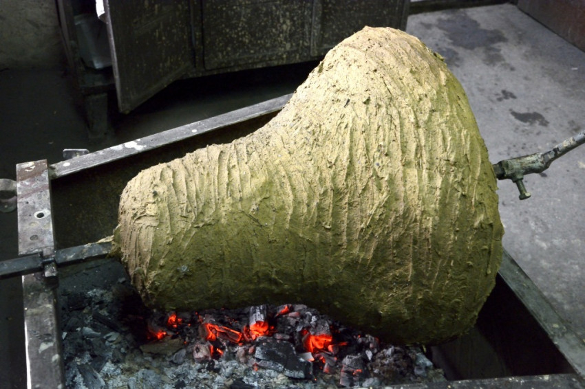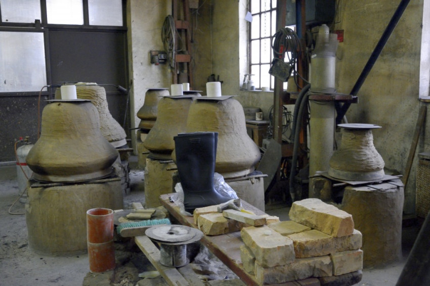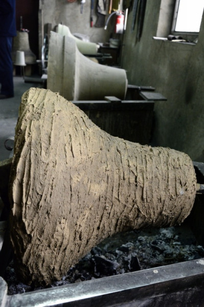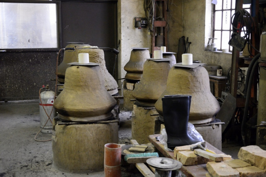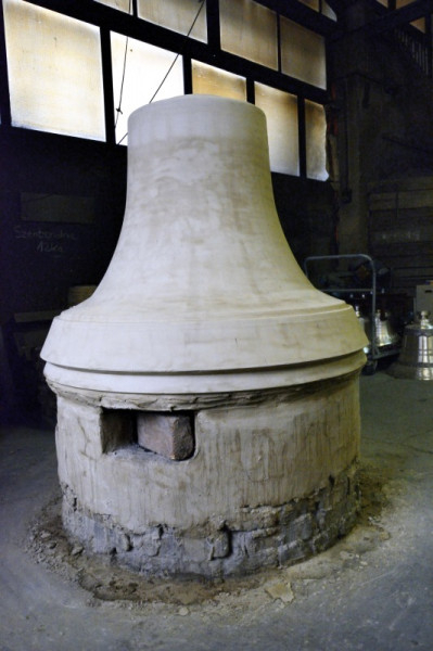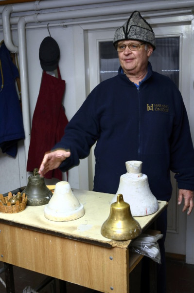 Hogy jobban megértsük, hogyan készülnek a harangok és a díszeik, átsétálunk az udvaron, a ház aljában levő díszítőműhelybe, ahol Mária szorgoskodik. Miklós makettet vesz elő és állít az asztalra, amelynek három, egymásba illeszkedő, agyagból készült részét a matrjoskababákhoz hasonlítja. Az első és egyben az alsó rész a magminta. Erre illesztik rá a választózsírral bekent álharangot, amelyre a viasz dísznegatívok kerülnek. A harmadik, az előző kettőre ráhelyezendő elem a köpeny. A hármas minta kiégetése után a középső részt, vagyis az álharangot eltávolítják, a másik kettőt egymásba illesztik és szigetelik, földbe ássák, majd közéjük öntik a huszonkét százalék óntartalmú, forró vörösrézötvözetet, a harangot alkotó anyagot. Miután egy napig pihenni hagyták, előbb a belső, aztán a külső köpenyből „csomagolják ki”, végül alaposan letakarítják, homokfújják és lecsiszolják a harangot. Ezután már csak a próbakongatás van hátra. Ugye egyszerű?