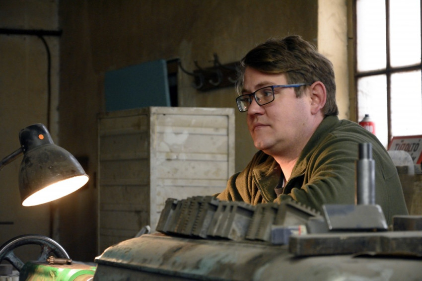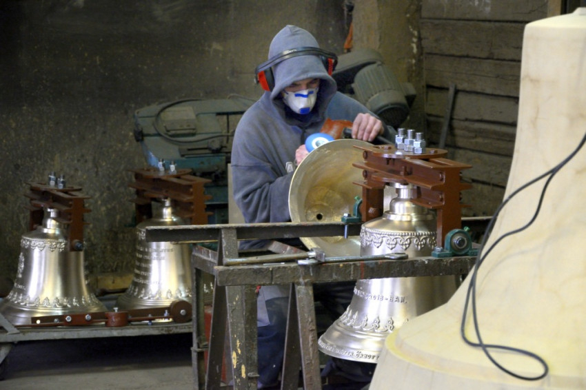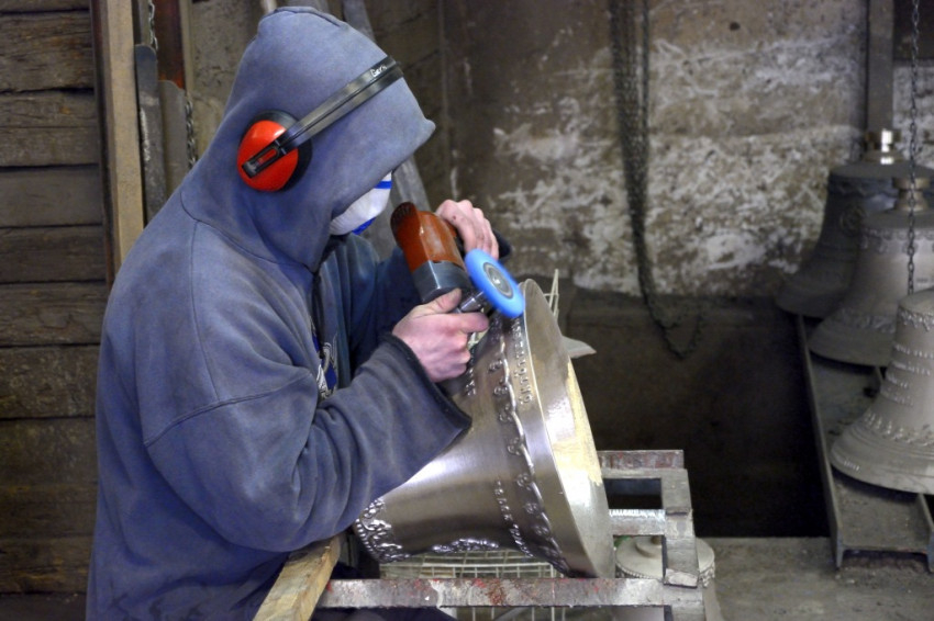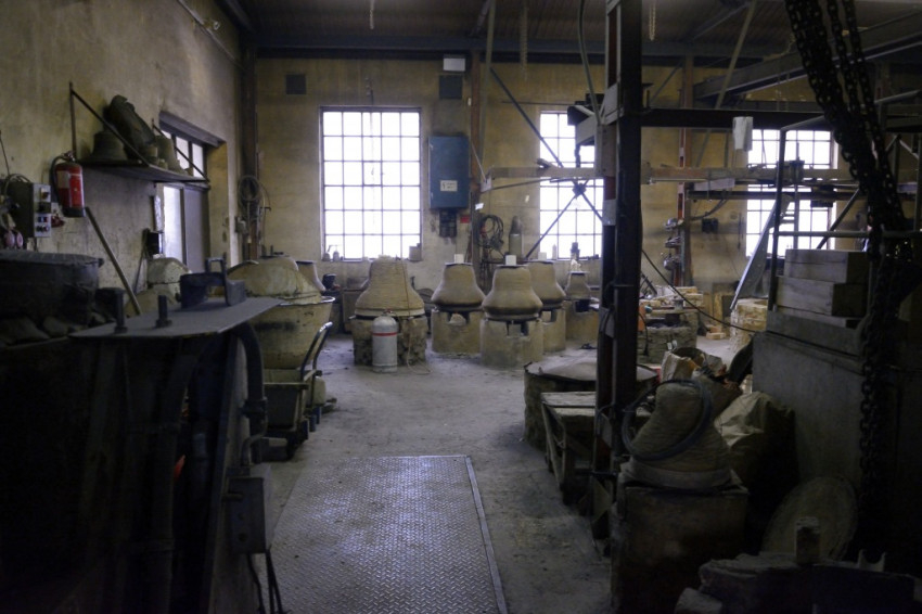 Ferenc keresésére indulunk, aki éppen egy lengőszerkezet tengelyét csiszolja szikrák ezreit röpítve szerteszét. Amikor végez, megmutatja nekünk a gépeit és az esztergapadját. Gyerekként ez a műhely volt a játszótere, meséli, szinte észrevétlenül nőtt bele a szakmába. Tizenhét-tizennyolc éve dolgozik a műhelyben, már a nyári szünetek jelentős részét is itt töltötte annak idején. Minden harangot a „gyermekének” tekint. A legnagyobb, amelynek a készítésében részt vett, tizennégy mázsás volt, Balmazújvárosból rendelték. Arra a munkájukra pedig mindmáig meghatódva emlékezik, amikor egy férfi a lánya emlékére készíttetett náluk harangot.