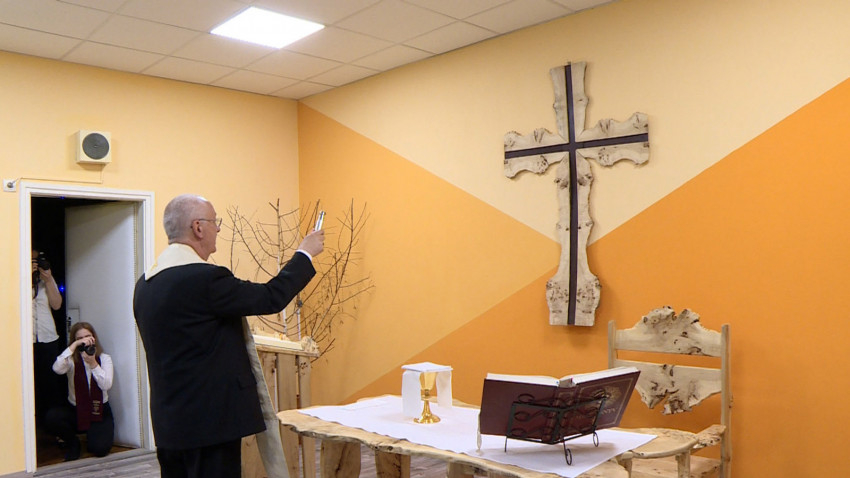 Az iskola diákjainak műsora után Ternyák Csaba egri érsek megáldotta az épület emeletén kialakított kápolnát.