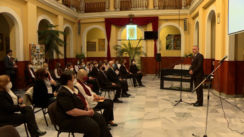 Az iskolaépület egykor a Szatmári Irgalmas Nővérek zárdája volt, a közösség tagjai videoüzenetben köszöntötték az ünneplőket.