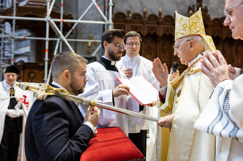 Ezeket a szempontokat azért szeretném hangsúlyozni, mert a ti lovaggá avatásotok nem az Egyházon kívül, hanem azon belül történik, és a mai ünnepélyes szertartás ennek a csúcspontja. Szeretném ezért, ha ez a vízió a ti identitásotoknak részévé válna. Hiszen gyakran feltehetnek nekünk olyan kérdéseket, mint például: Kik vagytok ti? Mi értelme ma egy ilyen rendnek? Nem vagytok anakronisztikusak? Sőt, fel kell tennem magamnak is a kérdést: Ki is vagyok én mint dáma avagy lovag? Miért is vagyok tagja egy olyan rendnek, amelyet a jeruzsálemi Szent Sírról neveztek el?