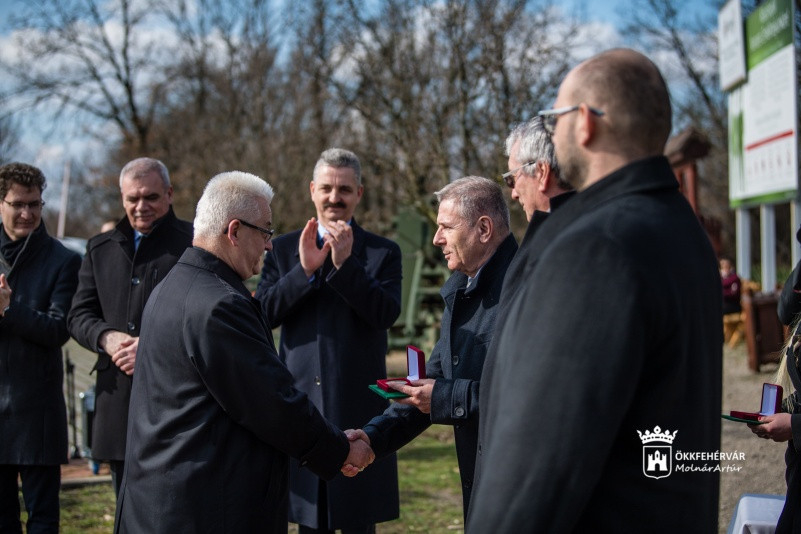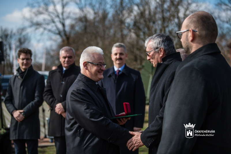 A köszönetet szimbolizáló honvédelmi elismerést Benkő Tibor honvédelmi miniszter adta át Spányi Antal megyéspüspöknek az emlékpark kialakítása és működtetése érdekében végzett munkájáért.