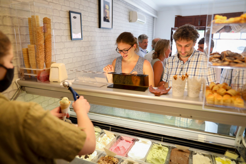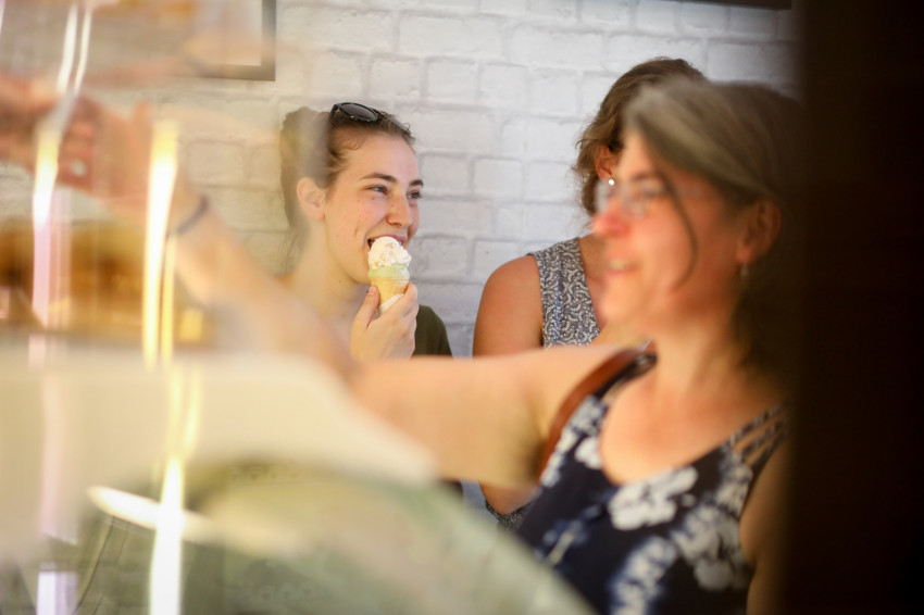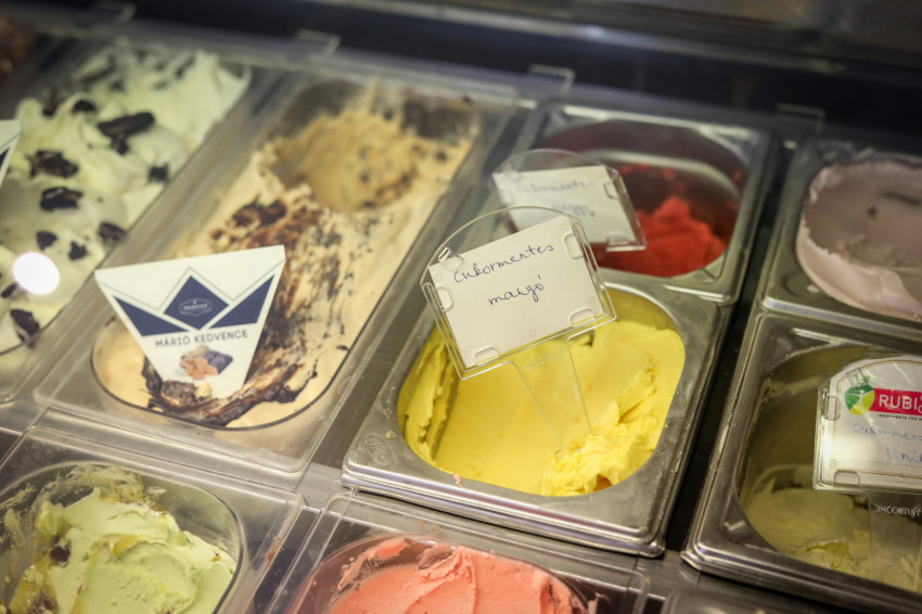 A megáldást kóstoló követte. Mintegy húszféle ízből – köztük klasszikusok és különlegességek – nem volt könnyű választani. Rüsics István szerint a finom fagylalt garanciája a jó alapanyag. Vaj, tejszín, akkor is, ha a kókuszzsír lényegesen olcsóbb, igazi gyümölcs, nem pedig aroma. A klasszikusok mellett fontosnak tartja, hogy kipróbáljon új dolgokat, de nem feltétlenül akar mindenben haladni a trenddel. Kihagyhatatlan különlegesség a pisztáciafagylalt, amelynek lényege a finomra őrölt, majd sajtolt magból készült sűrítmény. Ezt picit megsózzák, így „kiadja az ízét”.