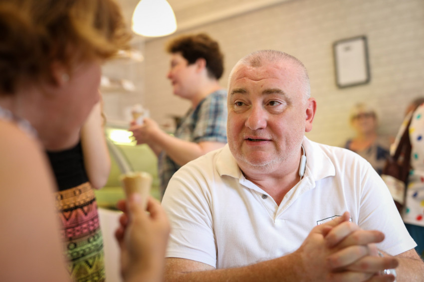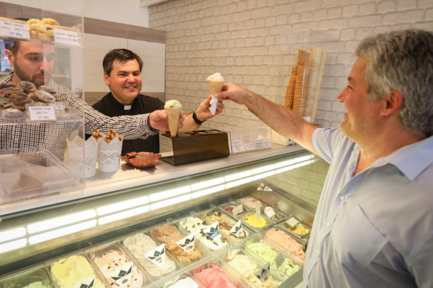 Ám a Valdocco többről szól, mint jó fagylaltról, finom süteményről és kávéról. A belépővel kereszt néz szembe, Bosco Szent János figyel a falról, a polcon „Don Bosco neked is üzen” felirattal a szent mondásait tartalmazó doboz. „Itt is meg kell jeleníteni, hova tartozunk, mit gondolunk a világról” – magyarázza a mester, és elmondja, mennyi kérdést kap vendégeitől, és ez már beszélgetési alap. István a napi munka során mindig talál alkalmat, hogy kijöjjön a vendégek közé. Most is szívesen beszélget, az arcán ott a mosoly. „Mi úgy szeretnénk evangelizálni, hogy lássák, örömünk van. Boldog ember vagyok, a családom egészséges, boldog, 35 éve tartó házasságban feleségemmel három gyereket neveltünk fel, unokám van. A Szent József Társaskör aktív tagja vagyok. Szeretem a munkám. Amit elkészítek, és ahogy beszélek, az mutassa meg, mi ad nekem naponta erőt” – fogalmazza meg, mit jelent számára ez az evangelizáció.
