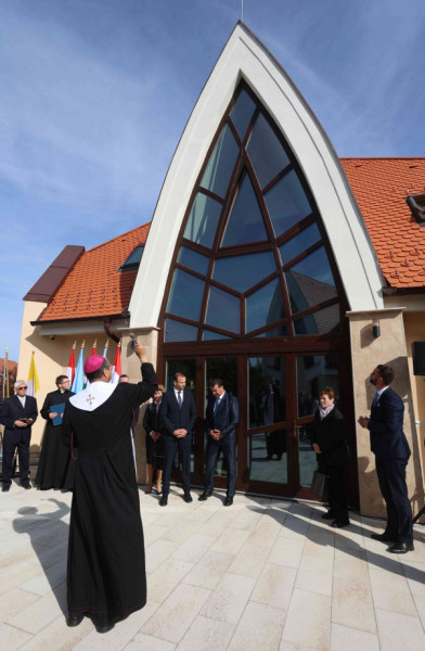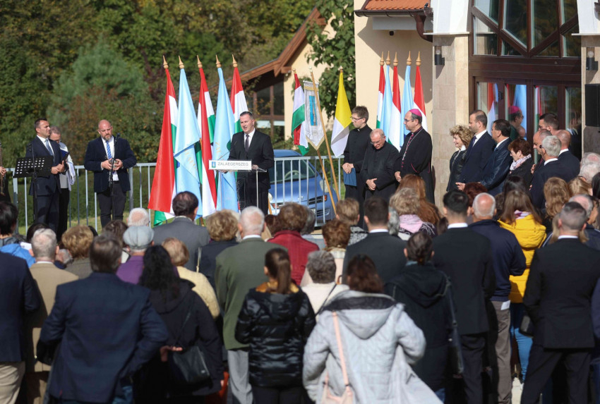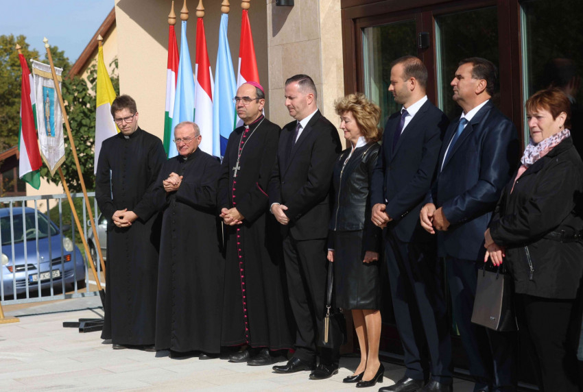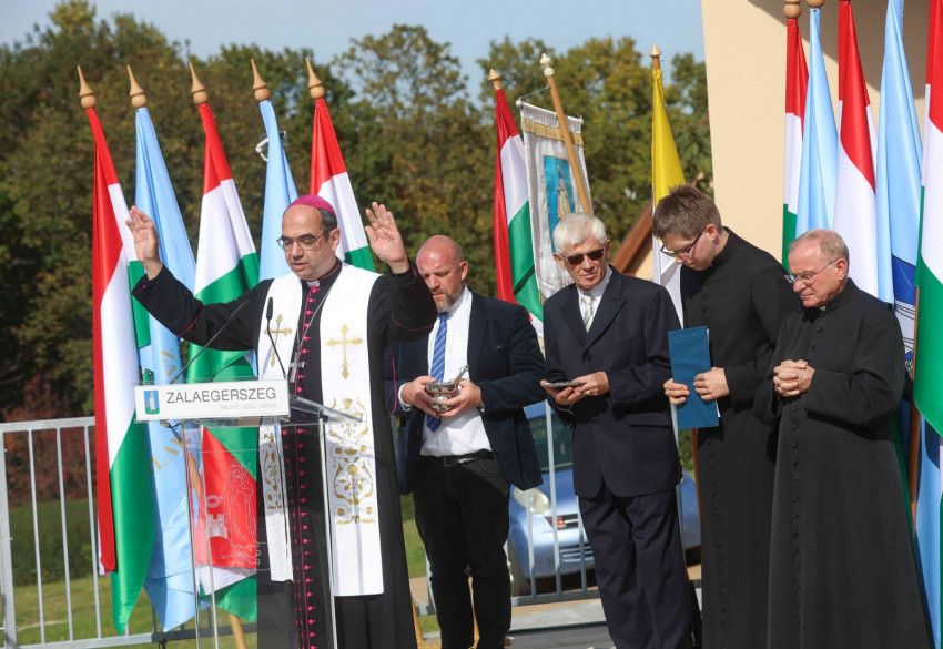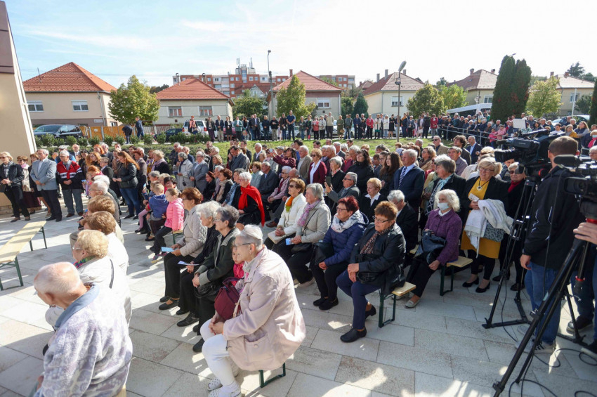 Balaicz Zoltán polgármester és Vigh László országgyűlési képviselő köszöntője után közös éneklés következett, majd Stanka László, az Evo-Komplex vezetője átadta a kulcsokat Németh Lajos egyházközségi elnöknek, valamint a püspöknek. Nagy Bálint államtitkár ünnepi beszéde után Székely János megáldotta a közösségi házat.