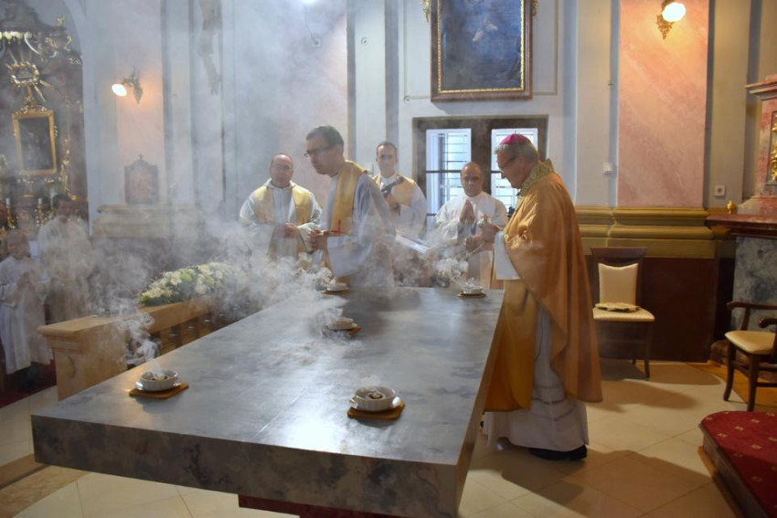 Az új szembemiséző oltár felszentelésével kapcsolatban kiemelte: „Az oltár körül születik az Egyház, amelynek tagjai vagyunk, és innen részesülünk a szentségekben.”