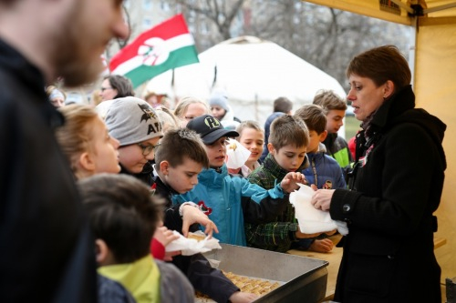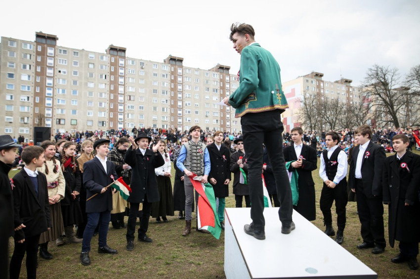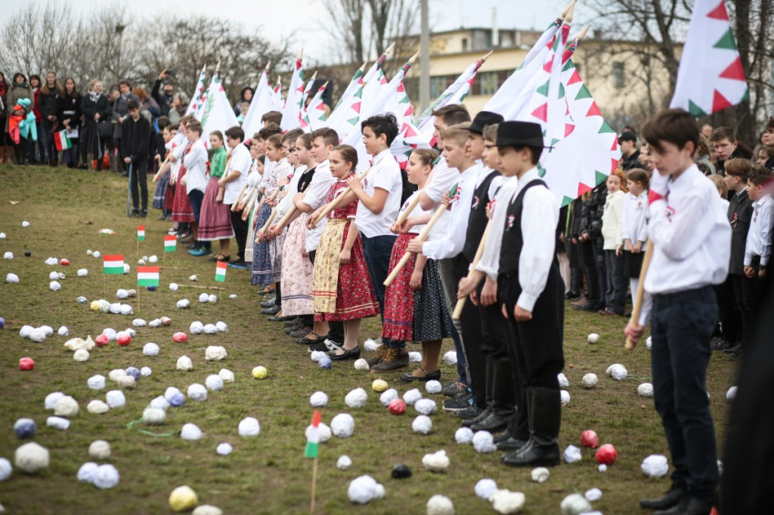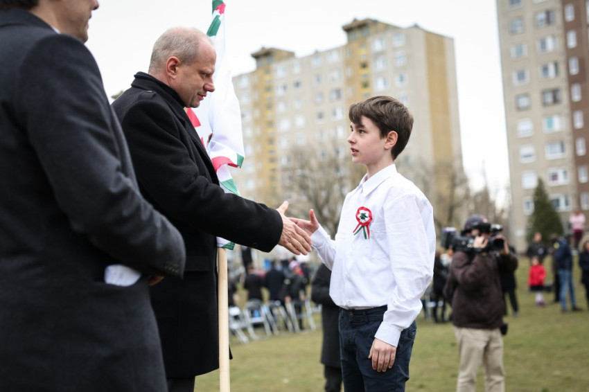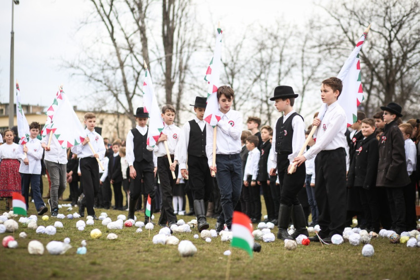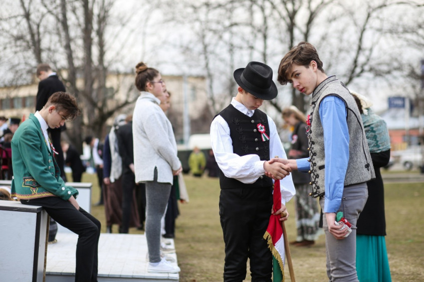 Hazafelé indulunk, de a közelben álló Petőfi-szobornál még megállunk egy percre. A virágágyás tele van szurkálva zászlókkal, kokárdákkal: sok közöttük a szív alakú. Mindet gyerekek készítették, vagyis „kézműves termékek”, nem gyáriak, boltiak. Annak jelei, aminek a mai, rendhagyó megemlékezés is: hogy lehet közünk a múlthoz a szív, az érzelmek szintjén is, hogy hőseink nagy néha, ünnepi pillanatokban kiléphetnek a történelemkönyvekből.